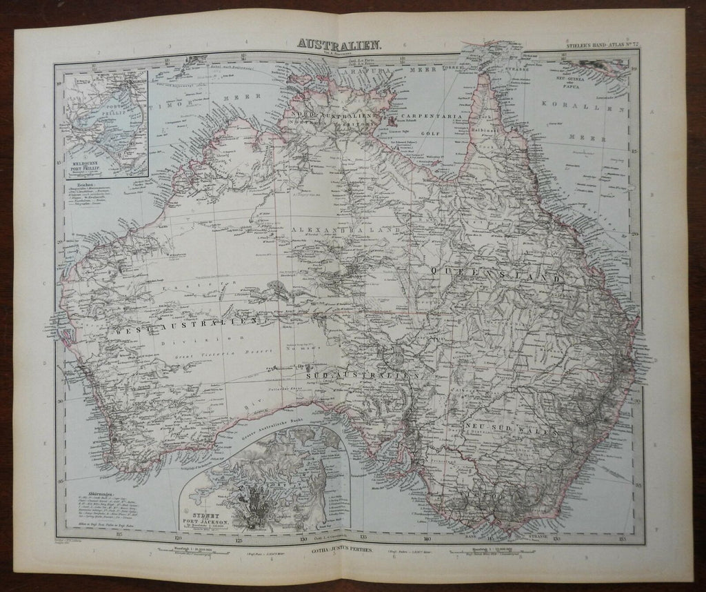 Australia continent Sydney city plan 1890 Luddecke Stieler detailed variant map