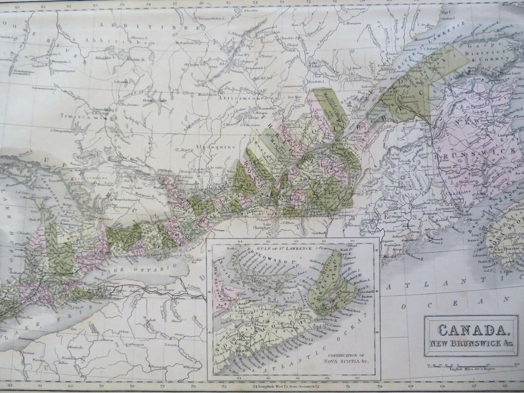 (Old Maps, 19th Century Maps, North America, Canada, New Brunswick, Quebec, Ontario, Montreal, Toronto, Quebec City, Three Rivers, Nova Scotia).