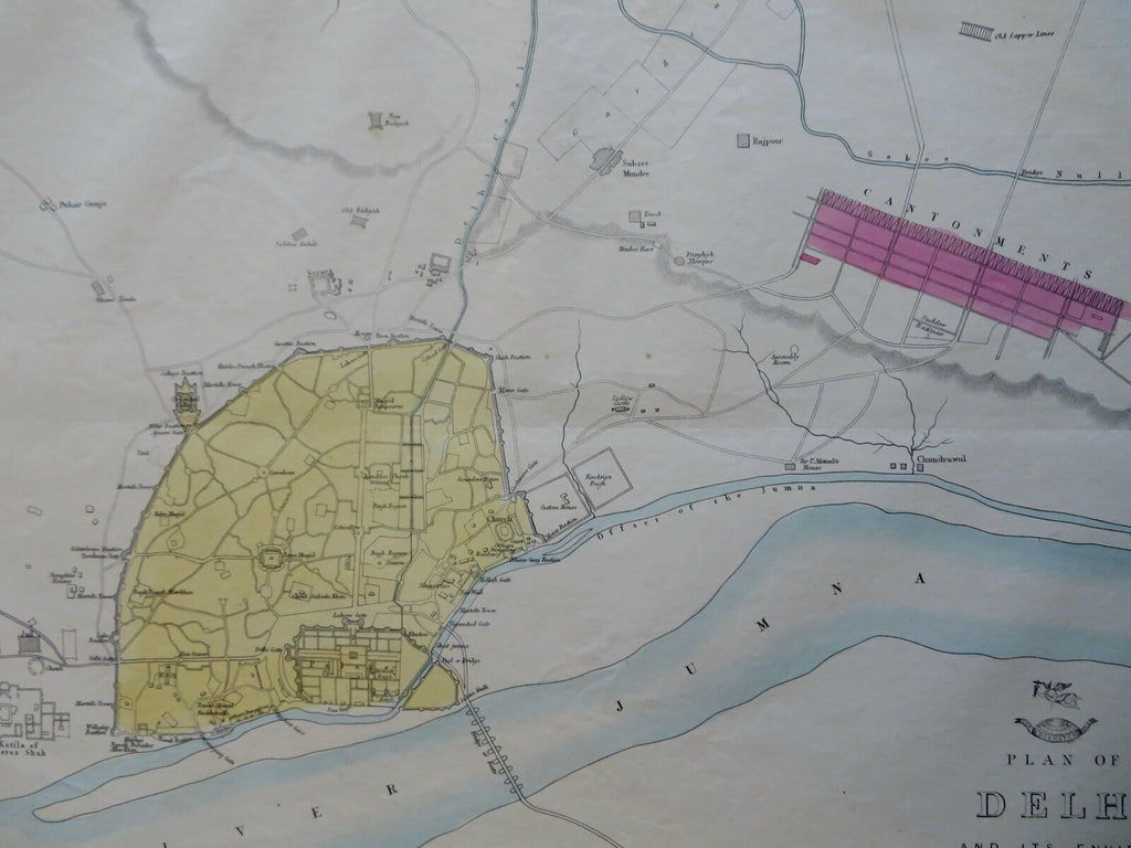 (Old Maps, 19th Century Maps, Asia, Southeast Asia, India, British Raj, Delhi, Jumna River, City Plan, Palaces).