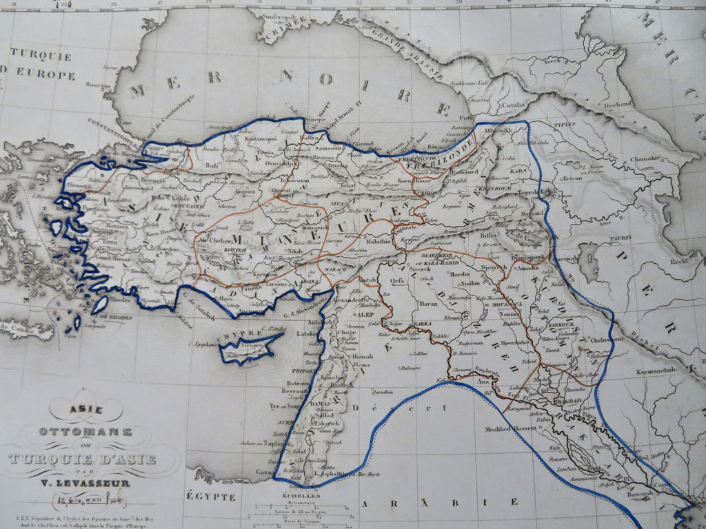 Eastern Ottoman Empire Anatolia Syria Armenia 1852 Levasseur hand colored map