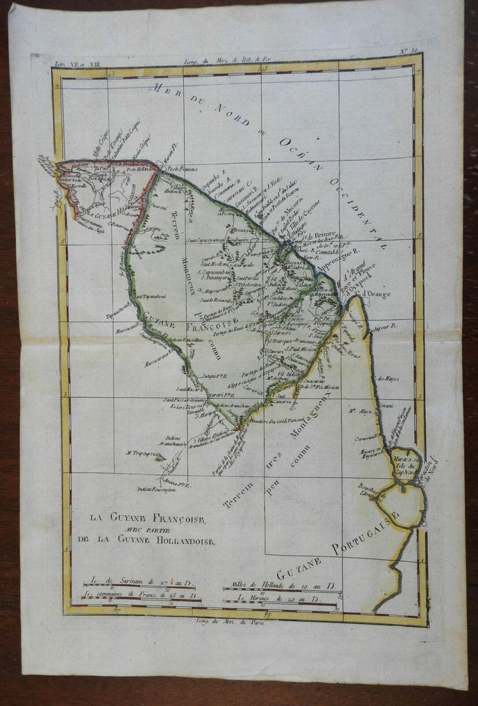 Guyana French Guyana Suriname South America 1780 Bonne engraved map