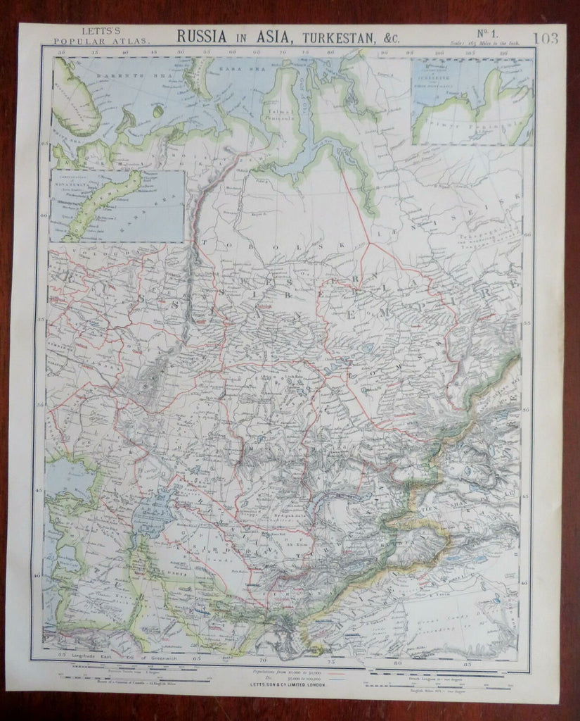 Russian Empire Turkestan Ural Mountains Aral Sea Bukhara 1883 Letts scarce map