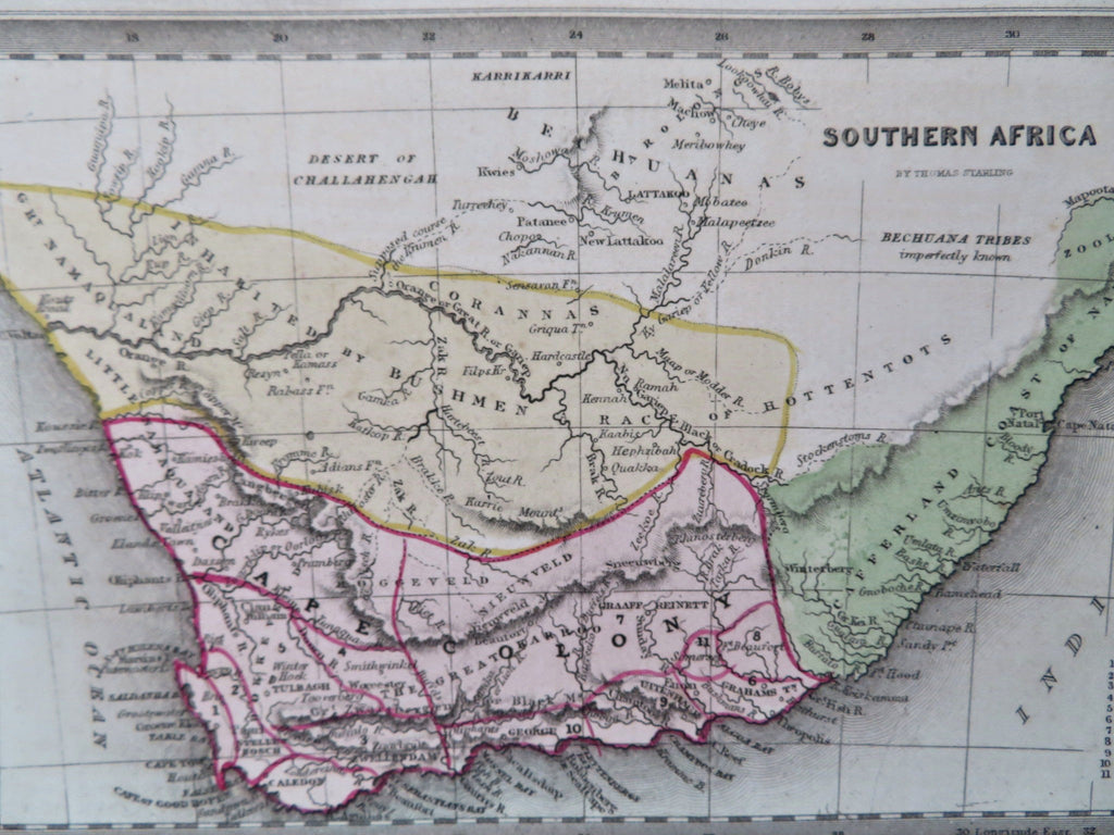 South Africa Cape Colony Cape Town Boer Natal 1831 Starling miniature map