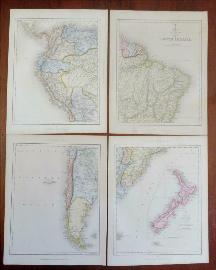 South America Brazil Peru Chile New Zealand c. 1850 Archer four sheet map