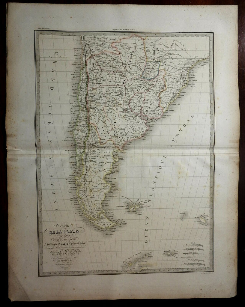 South America Patagonia Chile La Plata Uruguay 1828 Lapie large folio map