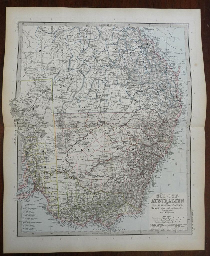 Southeastern Australia New South Wales Tasmania 1890 Petermann detailed map